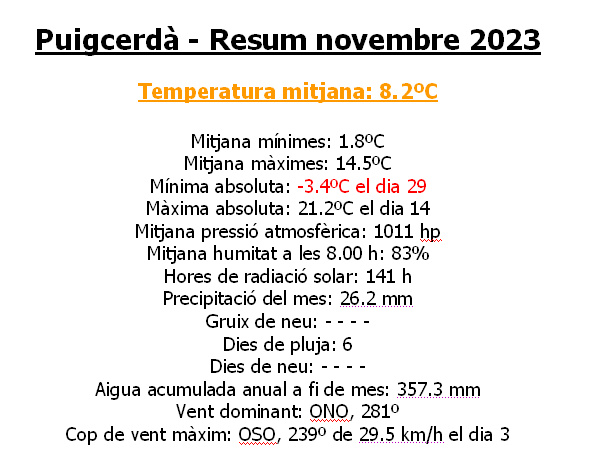Dades meteo avui a Puigcerdà al barri estació a les 8 h. del matí